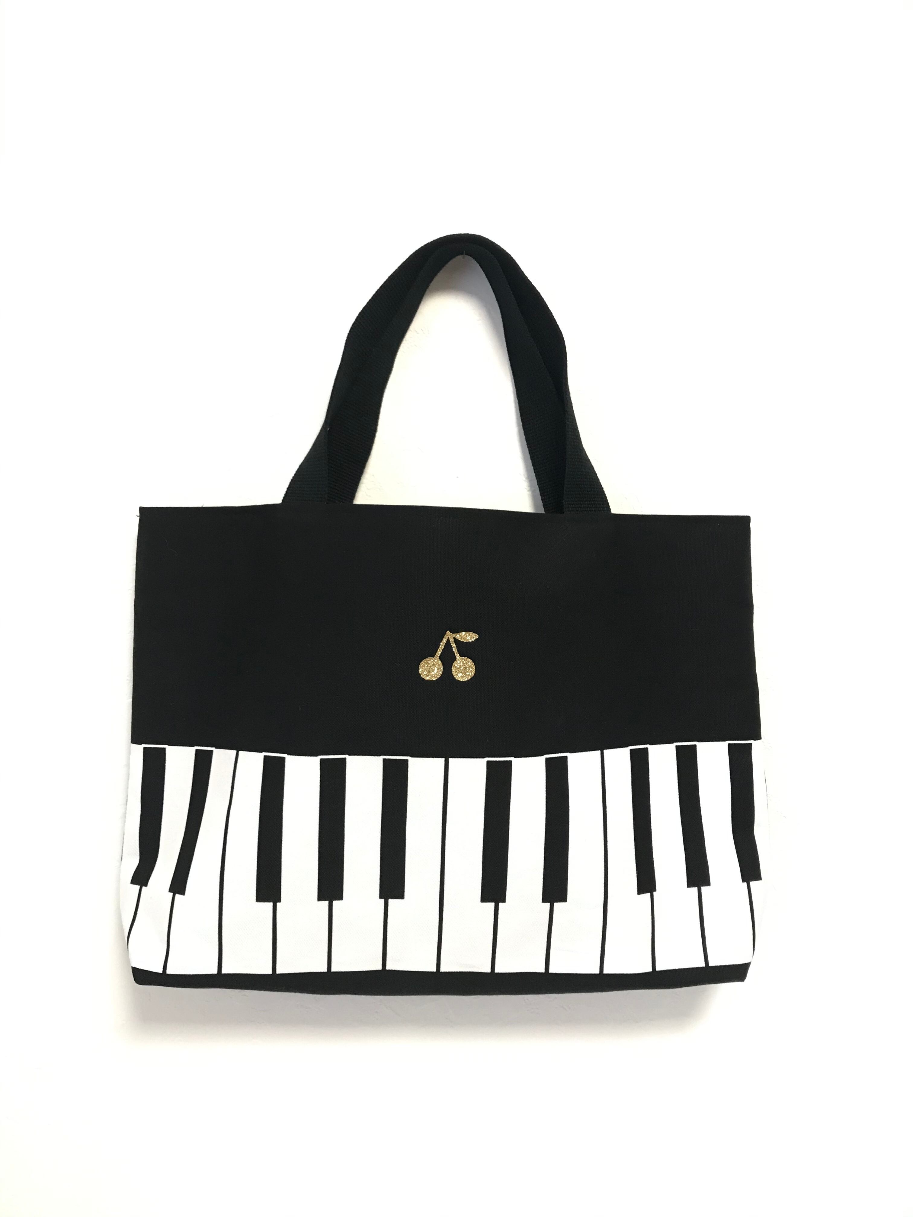 鍵盤がプリントされたハンドメイドのレッスンバッグ