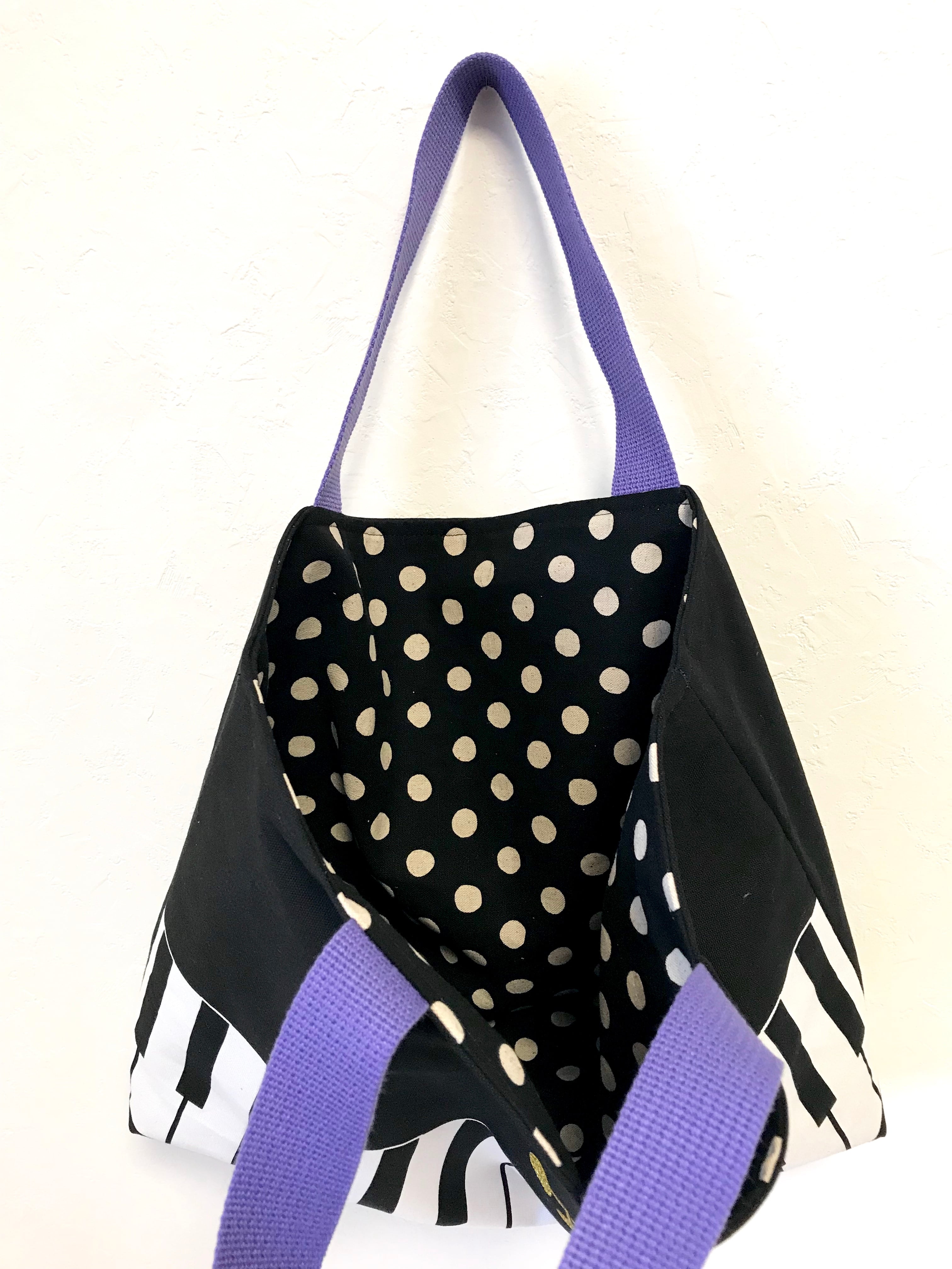 鍵盤がプリントされたハンドメイドのレッスンバッグ
